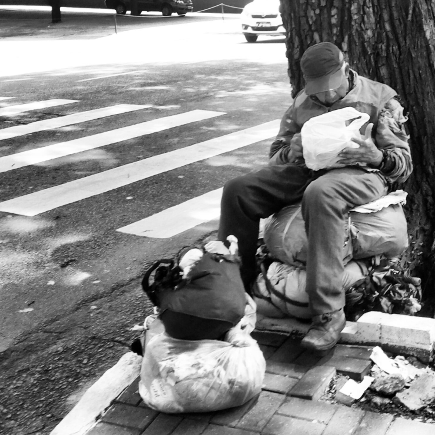 Com essa máxima me deparo com essa figura urbana que, não só o vejo lendo em meio de sacolas e sacolas de material reciclável, mas o que me tomou a atenção foi o cuidado com o livro em questão. Todo envolto em saco plástico sendo percorrido por dedos empoeirados e cansados, ao contrário dos olhos esbugalhados e sedentos de conteúdo.